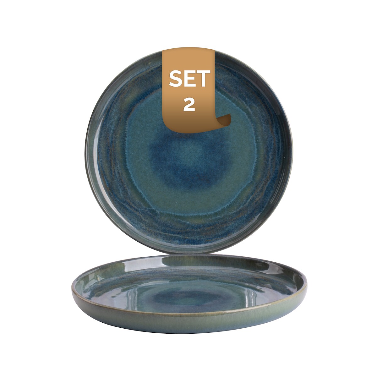 Palmer flache Teller-Set Miami, 2 x FrühStücksteller aus Steinzeug Ø 22 cm, Teller grün-blau - Modernes Steinzeug Geschirr ofen- & mikrowellenfest