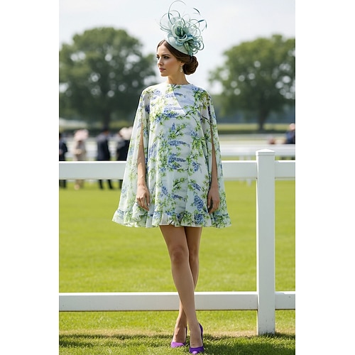 Linea ad A Tubino Colonna Corto Mini Abito Derby Abito formale Elegante Manica Lunga Girocollo Formale Derby del Kentucky Chiffon con Blocco di Colore