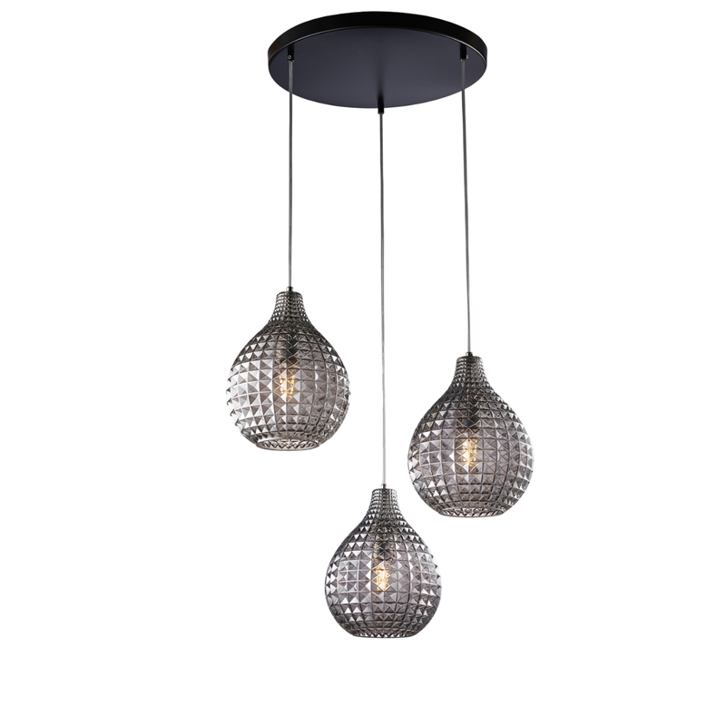 BeLight Diamante Pendelleuchte Schwarz/Chrom, 3x G9, Glas grau verspiegelt, Ø45 cm - BL300-S3-SP