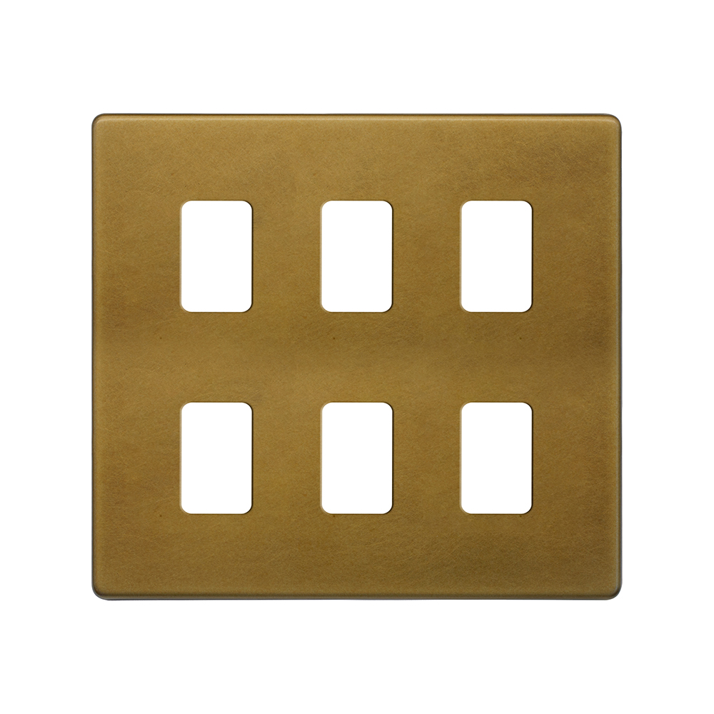 Soho Lighting Old Brass 6 Gang RM Rectangular Module Grid Switch Plate - Size: H 146mm x W 146mm
