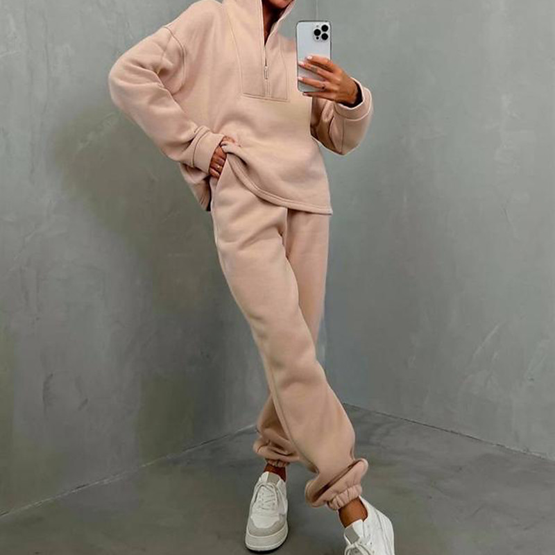 Women's Pink Fleece Pajamas Nighty Pjs Sets 2 Pieces Pure Color Sport Simple Comfort Party Home Street Warm Gift Long Sleeve Hoodie Pant Elastic Waistband Winter Fall Home Outfits