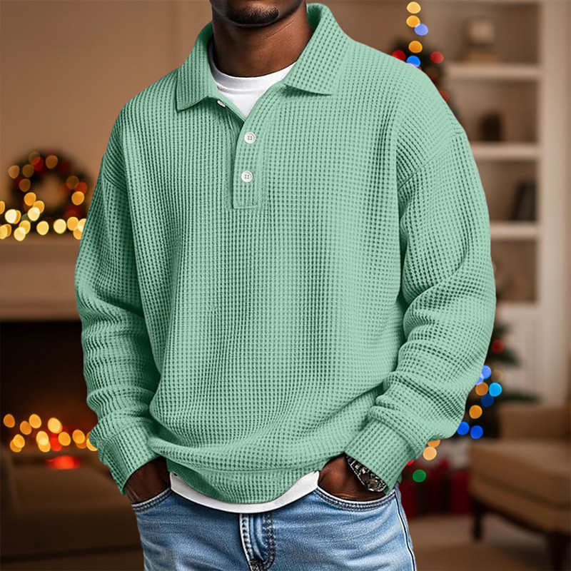 Men's Waffle Polo Shirts Textured Casual Holiday Lapel Long Sleeve Cool Plain Classic Style Fall Spring Fall All Seasons Regular Fit White Light Green Light Blue Red Navy Blue Purple Waffle Polo