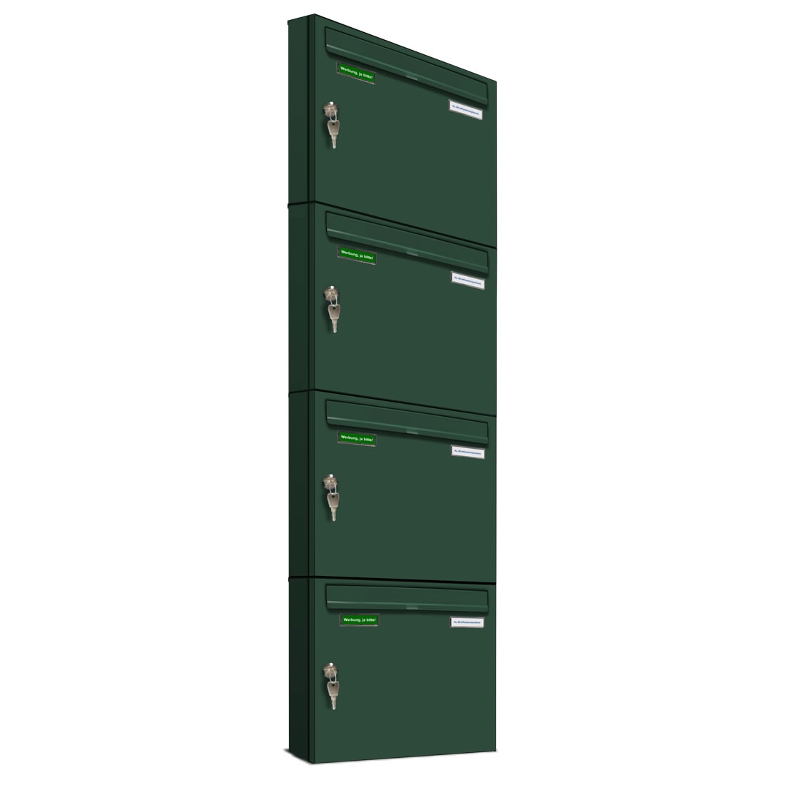AL Briefkastensysteme 4 x Basic Wand Briefkasten in RAL Farbe 6005 Moos Grün für Post A4, wetterfest, Artikelnummer: 431P4EA1P6005