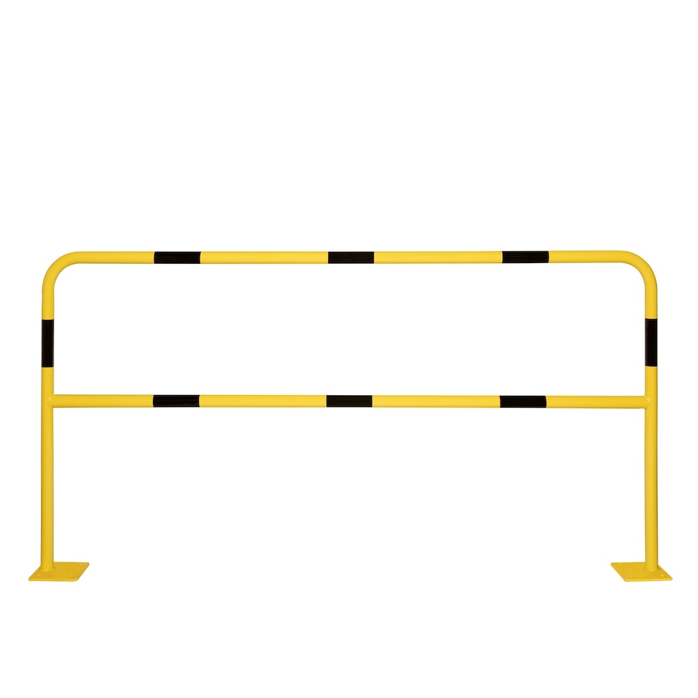 PROREGAL Schutzbügel Small zur Trennung & Sicherung von Arbeitsbereichen | inkl. Bodenplatte | HxB 100x200cm | Rohr-Ø 4cm | Schwarz-Gelb