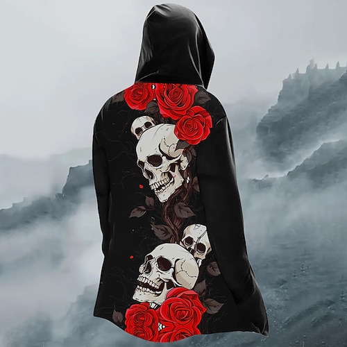 Per uomo Teschi cool Rosa Cappotto Invernale Giacca in Pile Cappotto Calore Termico Confortevole Casual Abbigliamento quotidiano Cerniera Tasca Stampa 3D Autunno Inverno Con Cappuccio Manica Lunga