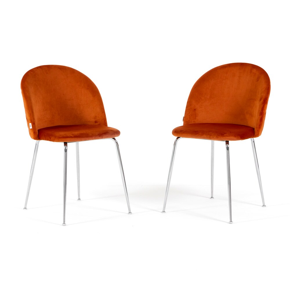 RATTATAN Set aus 2 Innenstühlen aus Samt, gepolstert, mit Metallbeinen, elegantes Design für Esszimmer, Bar und Restaurant – Sara – Rost/Silber