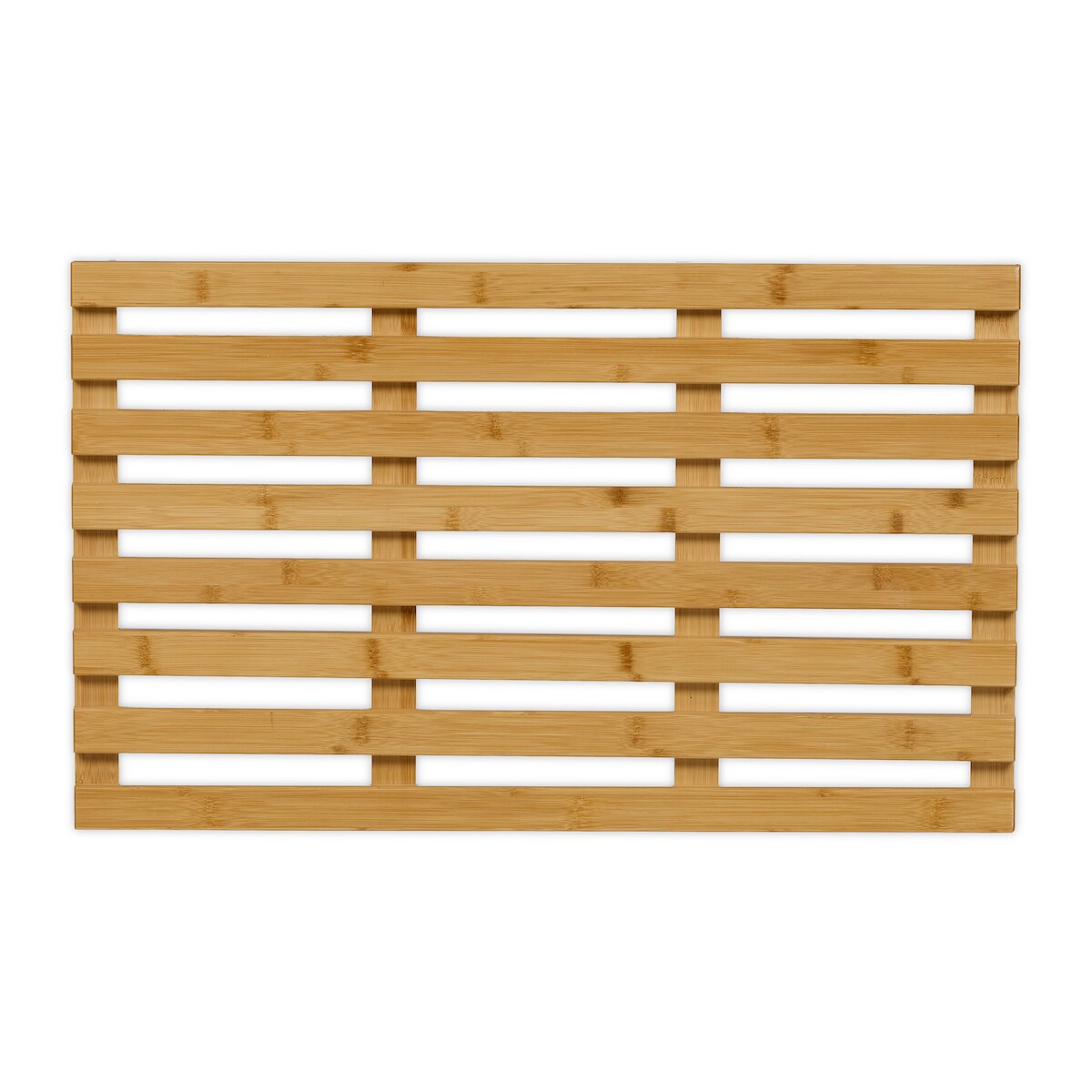 Relaxdays Bambus Badematte, 66 x 40 cm, rutschfeste Duschmatte für Badewanne, Dusche, Sauna, indoor & outdoor, natur