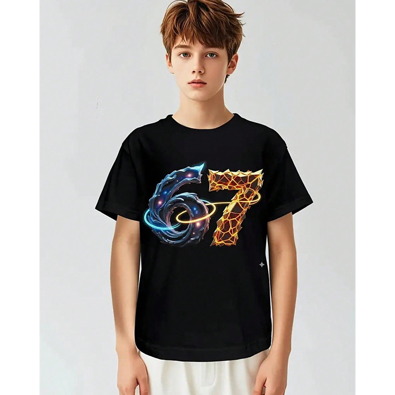 Cotton Kids Boys' Black Graphic Funny Slang 67 T shirt Blouse Crew Neck Short Sleeve Outdoor Dailywear Fashion Streetwear Designer Printing Summer