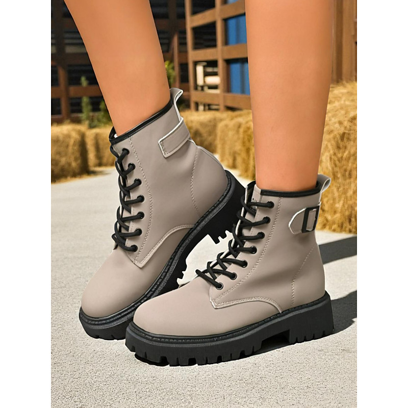 Women's Lace-Up Combat Boots with Side Buckle – Durable Anti-Slip Sole, Casual Outdoor Farm Style, Perfect for Fall and Winter Wear