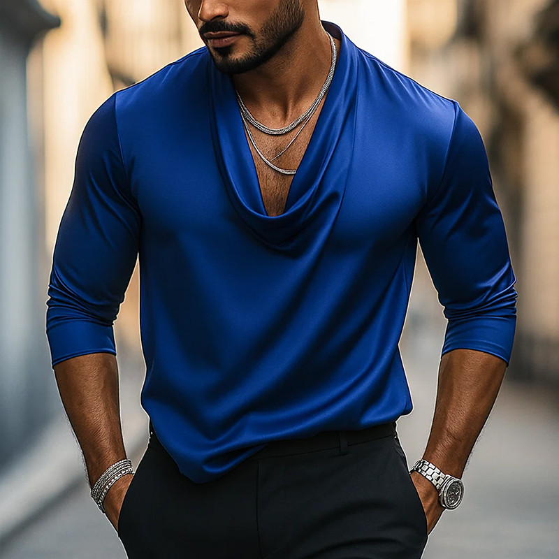 Men's Shirt Silk Like Satin Shirt Casual Shirt Plain Formal Wedding Black Wine Navy Blue Gold Long Sleeve Cowl Neck Spring Fall All Seasons Clothing Apparel Ruched