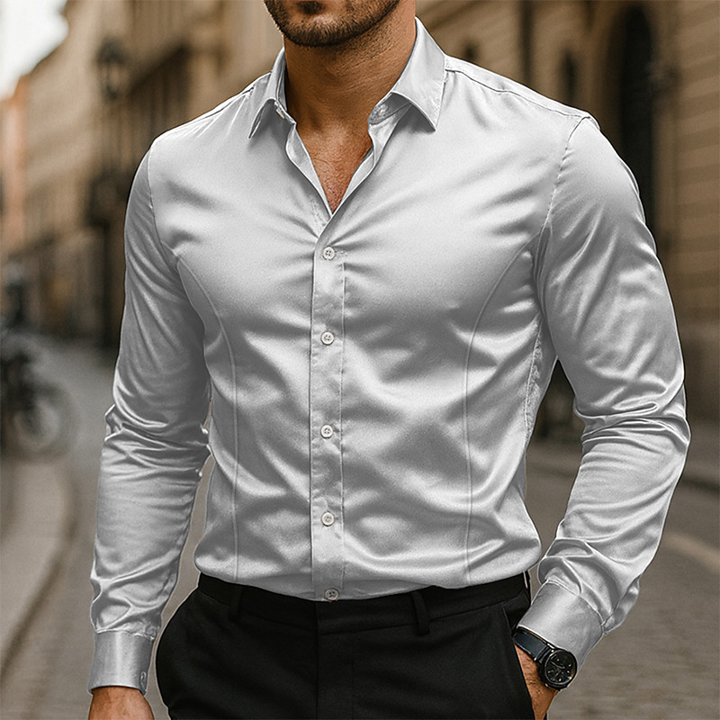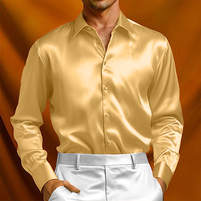 Men's Shirt Silk Like Satin Shirt Casual Shirt Plain Formal Wedding Silver Black Gold Green Long Sleeve Lapel Spring Fall All Seasons Clothing Apparel Ruched