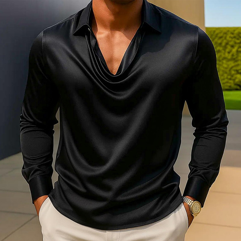 Men's Shirt Silk Like Satin Shirt Casual Shirt Plain Formal Wedding Black White Navy Blue Gold Long Sleeve Cowl Neck Spring Fall All Seasons Clothing Apparel Ruched