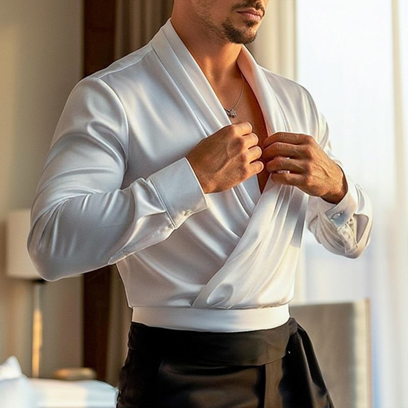 Men's Shirt Silk Like Satin Shirt Casual Shirt Plain Formal Wedding White Navy Blue Gold Dark Purple Long Sleeve Cowl Neck Spring Fall All Seasons Clothing Apparel Ruched