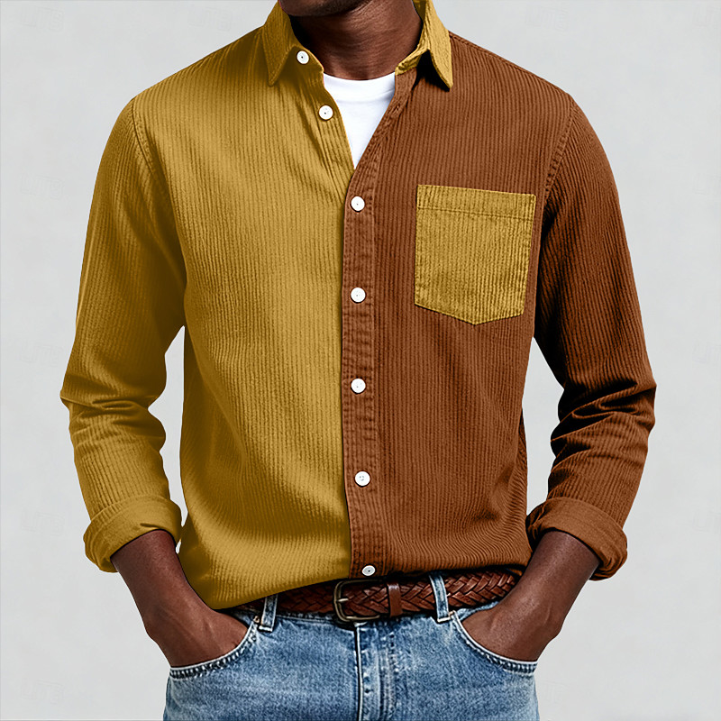 Men's Shirt Casual Shirt Corduroy Shirt Button Up Shirt Blue Yellow Red Navy Blue Green Long Sleeve Turndown Casual Outdoor Color Block Clothing Apparel Vintage Fashion Smart Casual