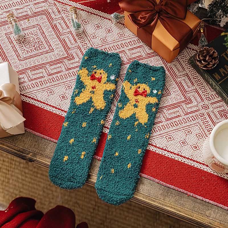 Christmas Socks for Women, Cozy Coral Fleece Warm Slipper Socks, Thick Plush Fuzzy Winter Sleep Socks, Couple Family Matching Gift, Indoor Non-Slip Floor Socks