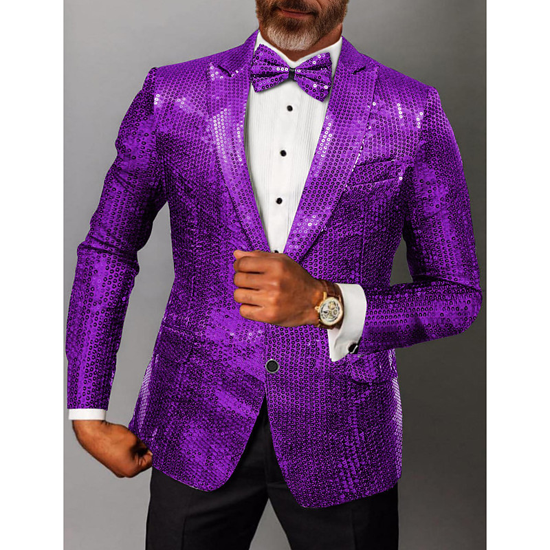 Men's Blazer Jacket Party Sparkle Sequin Solid Colored Black Silver Pink Tailored Fit Single Breasted Two-buttons