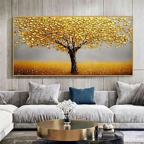Dipinti a olio fatti a mano su tela, decorazioni per pareti, alberi originali con trama di albero d'oro, alberi completi per la decorazione domestica con cornice allungata senza pittura con cornice