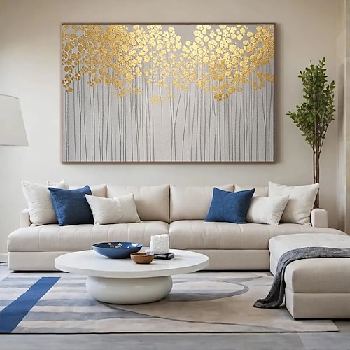pittura a olio dipinta a mano albero foresta pittura su tela fatta a mano grande astratta oro grande dorato blu paesaggio pittura a olio acrilica opere d'arte moderna per soggiorno decorazione di arte