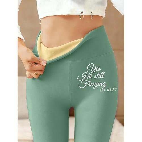 Per donna leggings foderati in pile Pantaloni in Pile Leggings Vacanza Vintage Stile Etnico Lunghezza intera Vita Alta Lettera Calore Termico Comodo Confortevole Elasticizzato All'aperto Casual