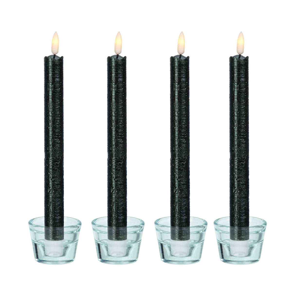 LED Kerze 4er SET Tafelkerze Stabkerze Echtwachs bewegliche Flamme Timer schwarz