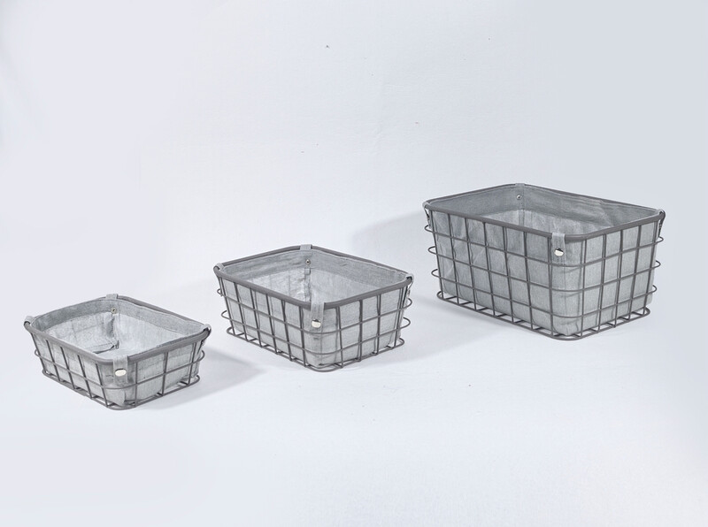 Premier Kids Bac de rangement en métal filaire gris avec doublure grise S/3, 15,5 x 11,5 x 7,5"