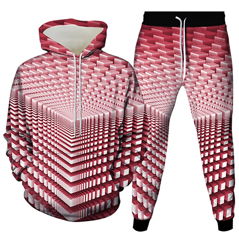 Men's Geometric Optical Illusion 2pcs 3D Sweatshirt Sets Tracksuit Hoodie Sweatshirt Long Sleeve Long pants Hooded Casual Daily Athleisure 3D Print Spring Fall Winter Yellow Green Red