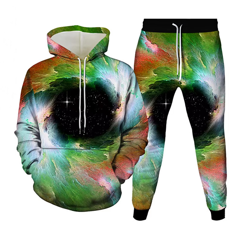 Men's Space 2pcs 3D Sweatshirt Sets Tracksuit Hoodie Sweatshirt Long Sleeve Long pants Hooded Casual Daily Athleisure 3D Print Hooded Spring Fall Winter Green