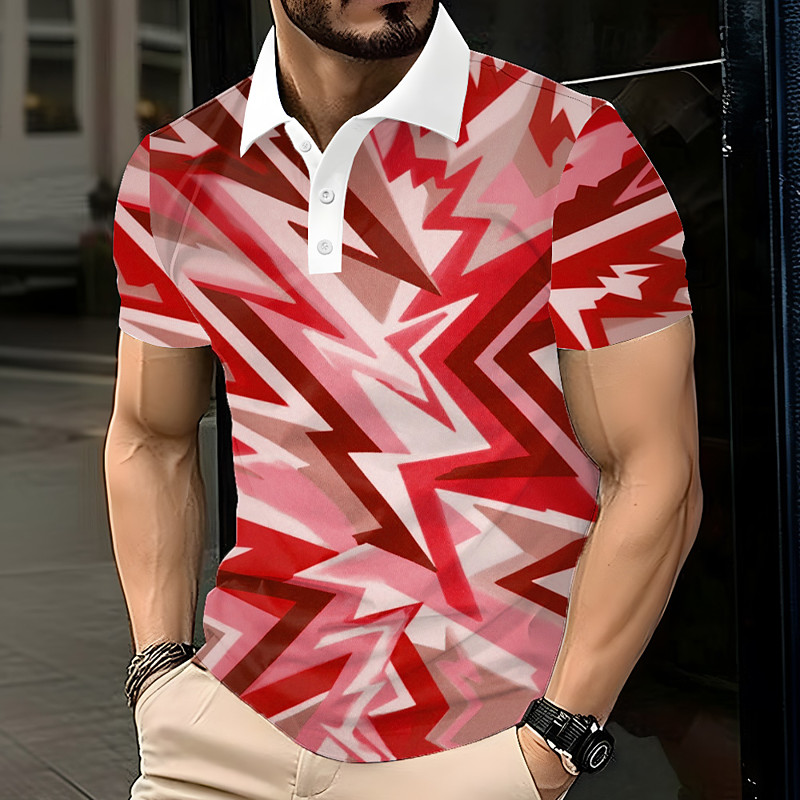 Men's Abstract Geometic Polo Short Sleeve Polo Shirts Lapel Business Casual Business Athleisure 3D Print Buttons Summer Red Blue Green