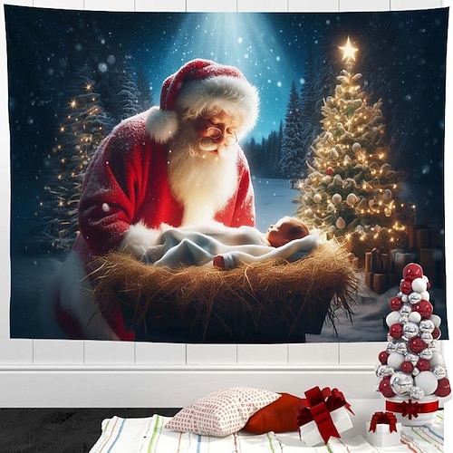 Arazzo natalizio di Babbo Natale – arazzo da parete festivo, scena natalizia invernale innevata, arazzo decorativo per casa, camera da letto, soggiorno