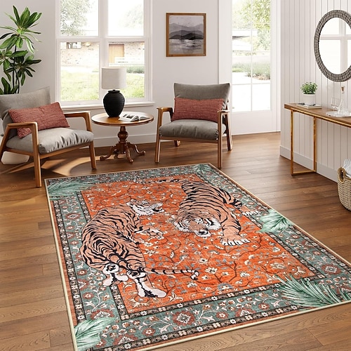 tappeto in velluto di cristallo in stile persiano, stampa di tigre tribale tropicale, arredamento per soggiorno e camera da letto, morbido e confortevole zerbino, tappeto decorativo unico per la casa