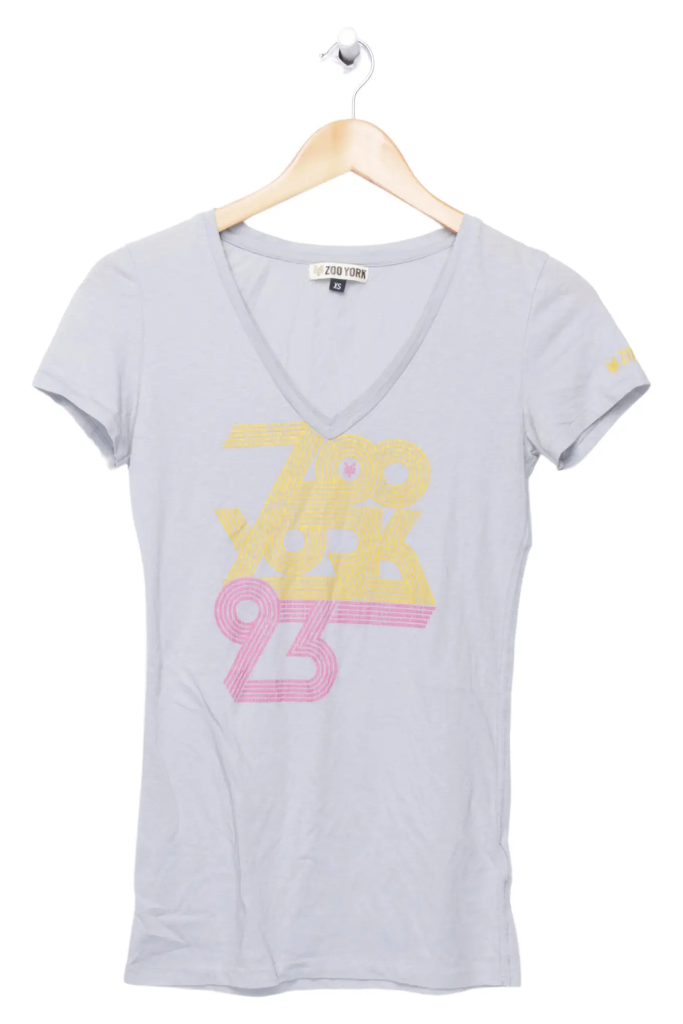 ZOO YORK T-Shirt Damen XS Grau V-Ausschnitt Logo Casual