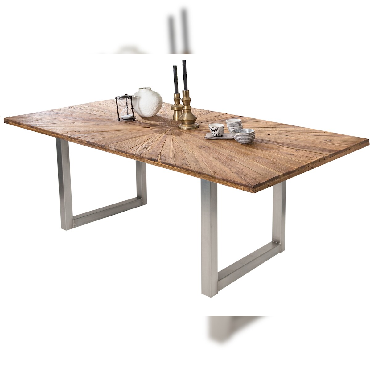 SIT Möbel Esstisch 180 x 100 cm | Platte recyceltes Teak natur | Gestell Metall antiksilber | B 180 x T 100 x H 75 cm | 15501-40 | Serie TABLES & CO
