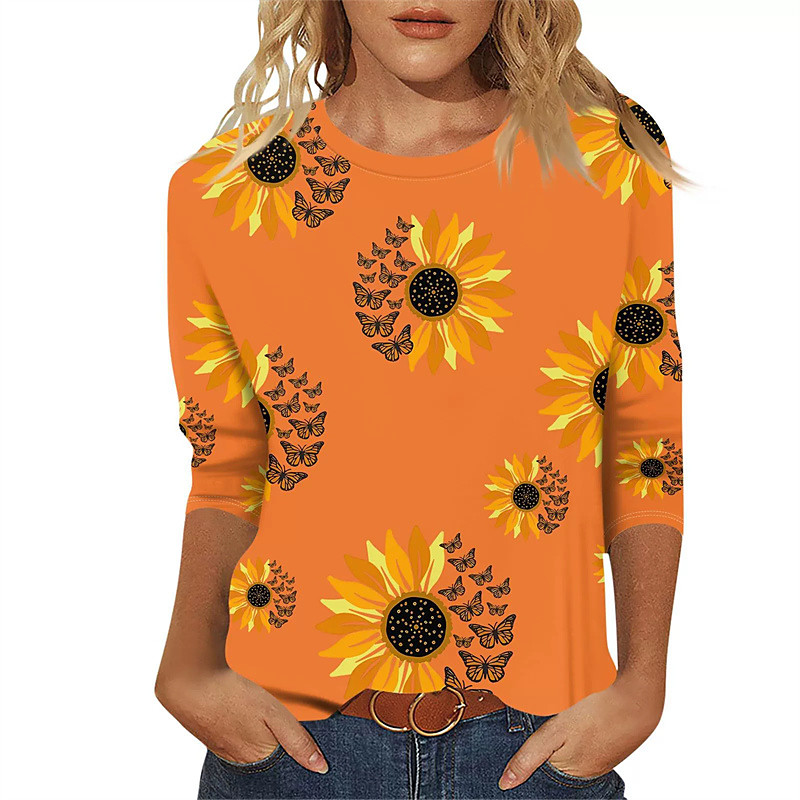 Women's T Shirt Graphic Sunflower Casual Short Sleeve Crew Neck Regular Tops Daily Going out Weekend Print Black White Yellow Orange Fall