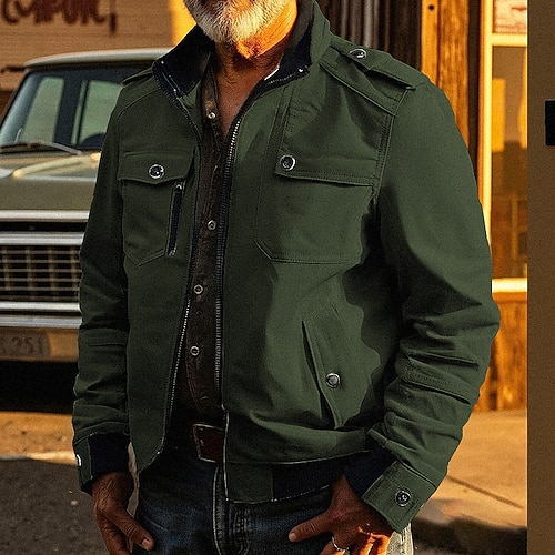Per uomo Giacca utility Giacca Cargo Vacanza Quotidiano Resistente all'usura Tasca Autunno Inverno Semplice Moda Classico Collo alla coreana Regolare Nero Rosso Cachi Verde militare Blu scuro Giacca