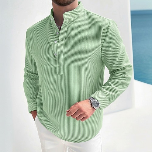 Per uomo Camicia Camicia popover Camicia casual Camicia di Seersucker Rosa Verde Azzurro Manica Lunga A righe Collo alla coreana Colletto Henley Casuale Quotidiano Abbigliamento Elegante Moda Casual