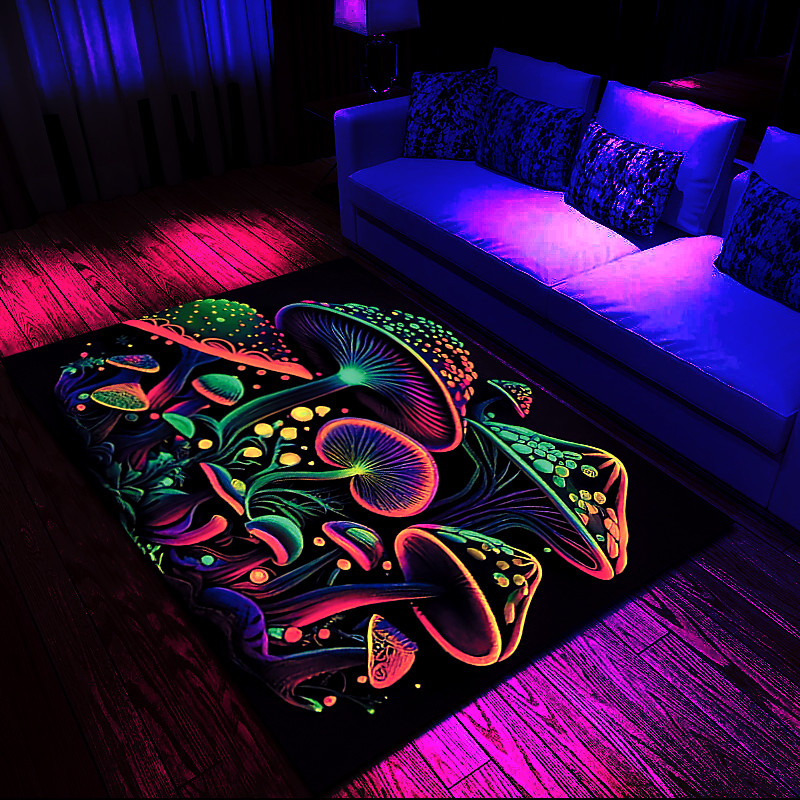 Fantasy Mushroom Blacklight Rug Carpet Floor Mat UV Reactive Glow in the Dark Rug Large Non-Slip Rug Mat Carpet for Room Decor