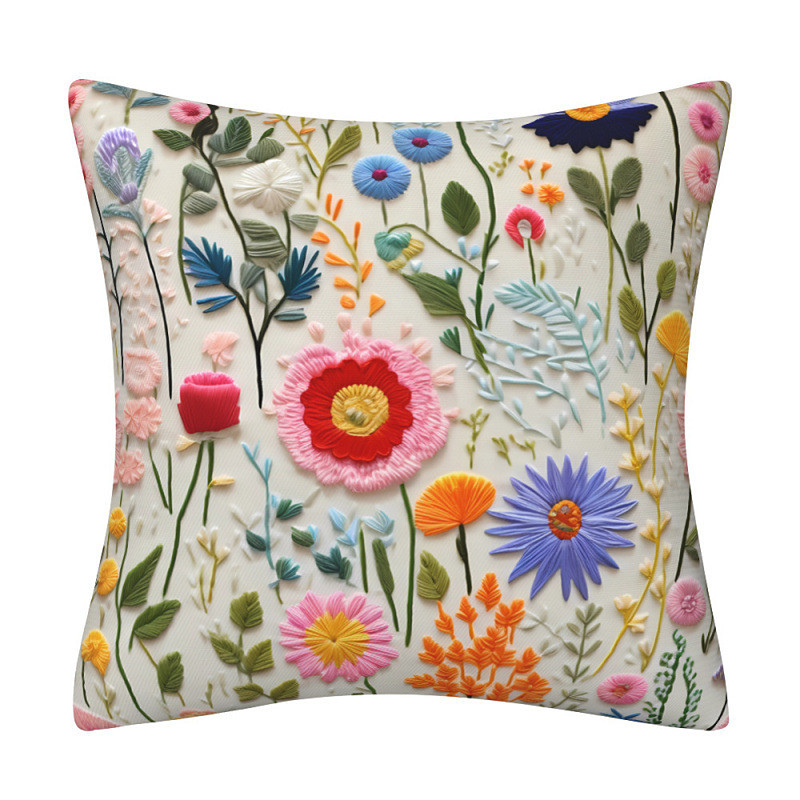 Floral Pillow Cover 2D Flat Print Decorative Cushion Case with Faux embroidery Soft Polyester Fabric for Sofa Bedroom Living Room Home Decor