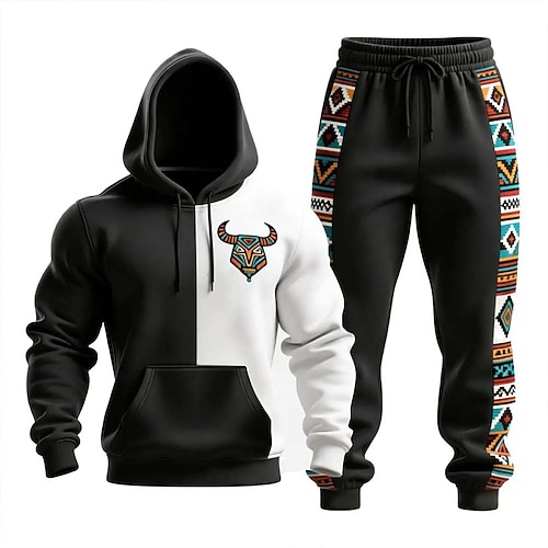 Per uomo Geometrico 2 pezzi Set di felpe 3D Felpa con Cappuccio Manica Lunga Pantaloni lunghi Con Cappuccio Stile Etnico Casual Quotidiano Athleisure Stampa 3D Primavera Autunno Inverno Nero
