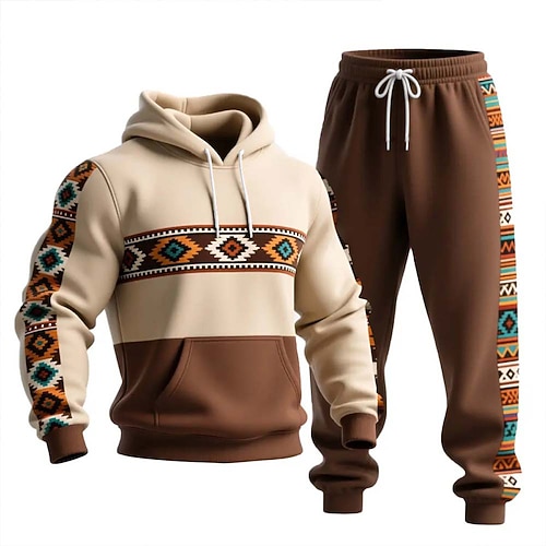 Per uomo Tribale 2 pezzi Set di felpe 3D Felpa con Cappuccio Manica Lunga Pantaloni lunghi Con Cappuccio Stile Etnico Casual Quotidiano Athleisure Stampa 3D Primavera Autunno Inverno Marrone