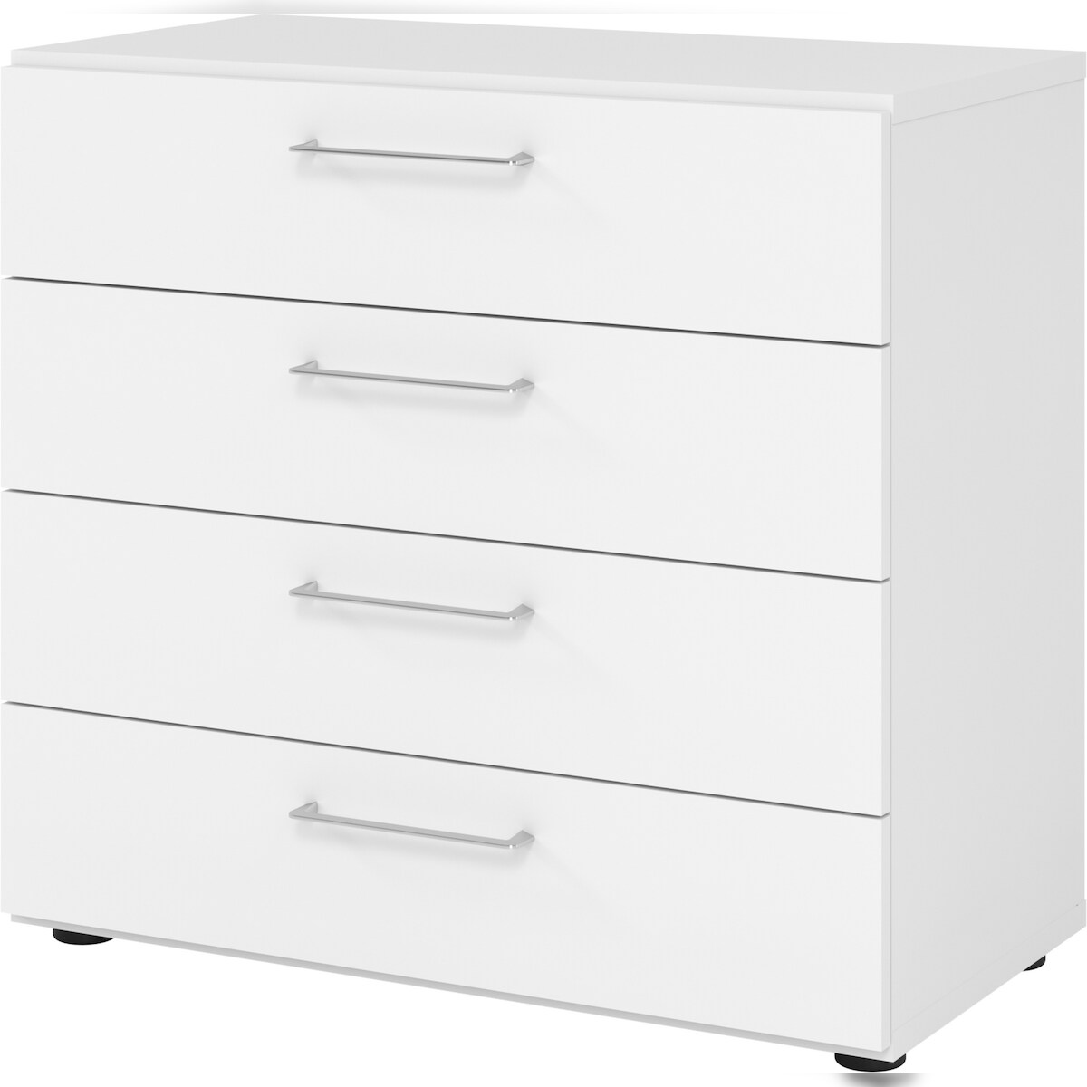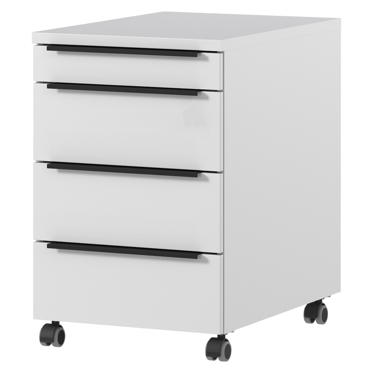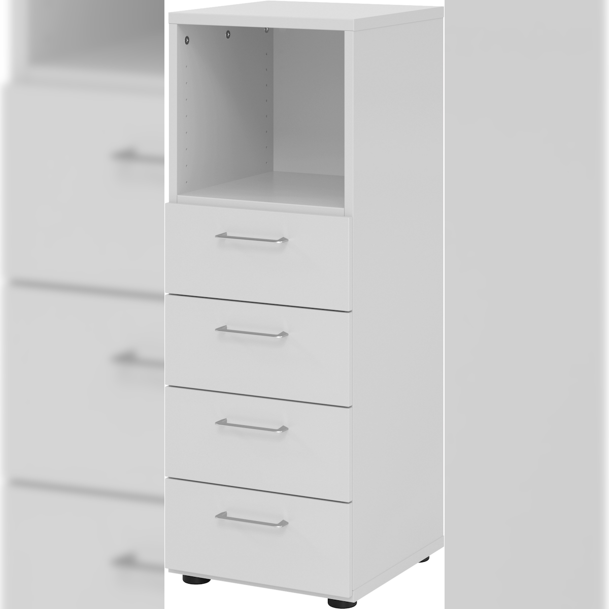 bümö smart Schubladenschrank, Büroschrank 80cm breit in weiß mit 4 Schüben - Bürocontainer aus Holz, Container mit Metallgriffen & Soft-Stop