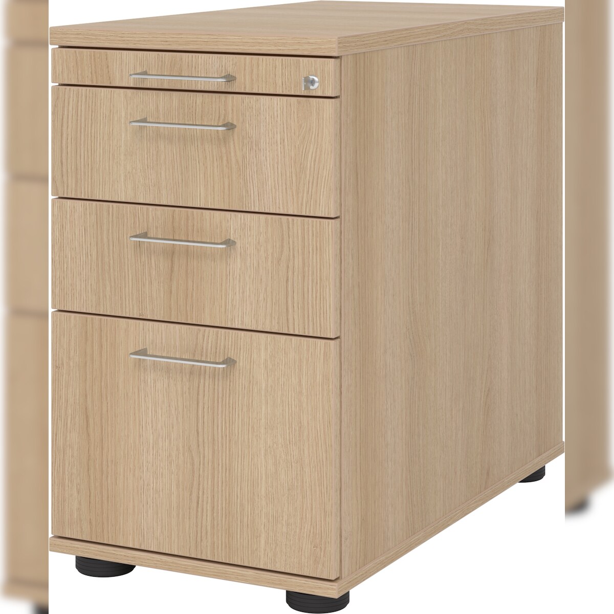 bümö Schreibtisch Schrank Büro mit Hängeregister für Hängeordner, Schubladenschrank Holz in Eiche, Container mit Schubladen & Hängeregistratur -