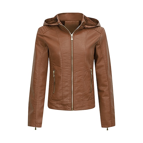 Per donna Giacca in Ecopelle Giacca da Biker Caldo Confortevole Cerniera Tasca Casual Tinta unica Vacanza Streetwear Casuale Abbigliamento quotidiano Regolare Con Cappuccio Vestibilità regolare