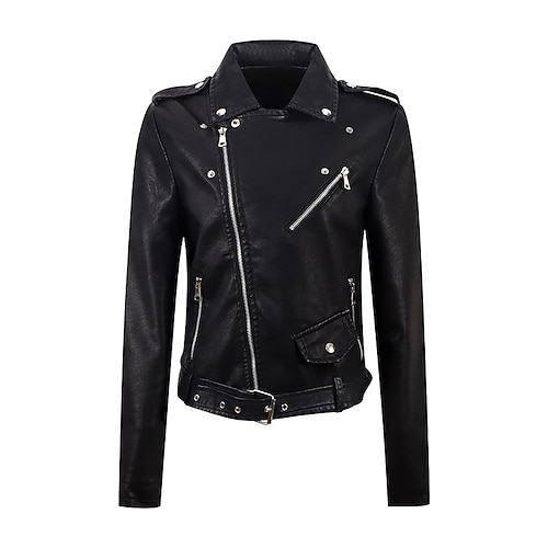 Per donna Giacca in Ecopelle Giacca da Biker Caldo Confortevole Cerniera Casual Tinta unica Vacanza Streetwear Casuale Abbigliamento quotidiano Corto Bavero Vestibilità regolare Manica Lunga