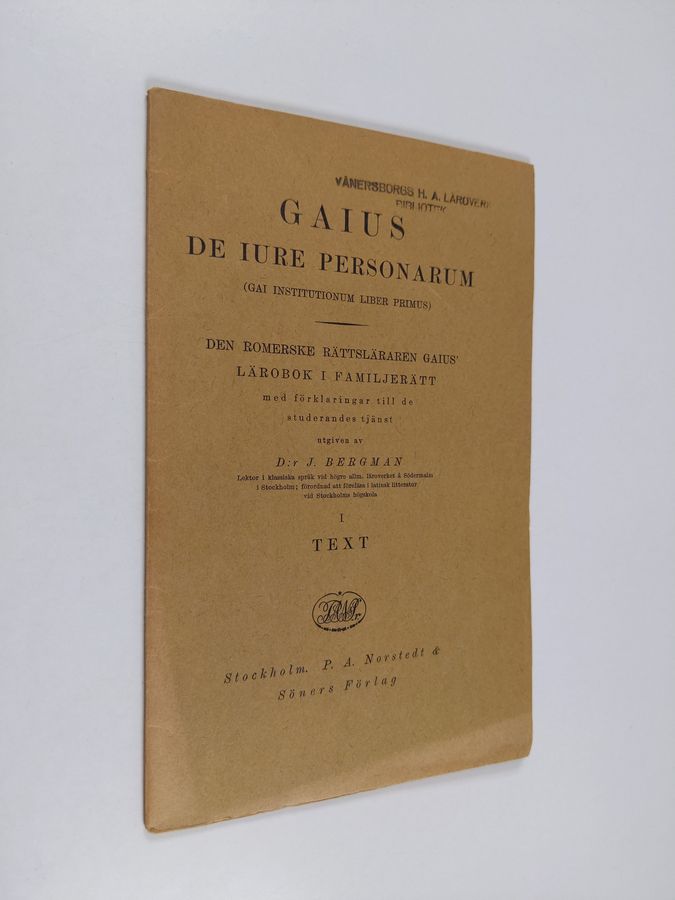 J. Bergman : Gaius de iure personarum (gai institutionum liber primus) : den romerske rättsläraren Gaius' lärobok i familjerätt med förklaringer till