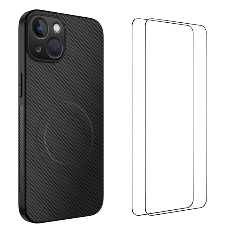 WANLONFENG Mobilskal till iPhone 15 MagSafe + [2-Pack] Härdat Glas