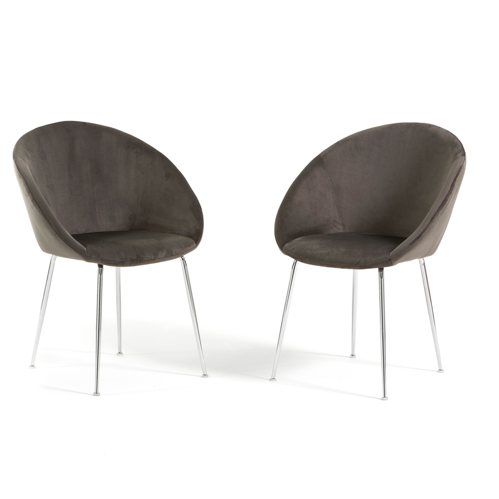 RATTATAN Set aus 2 Esszimmerstühlen aus weichem Stoff, Metallbeinen, modernem und bequemem Stil, ideal für Küche, Esszimmer oder Büro – IRIS– Dunkelgrau/Silber