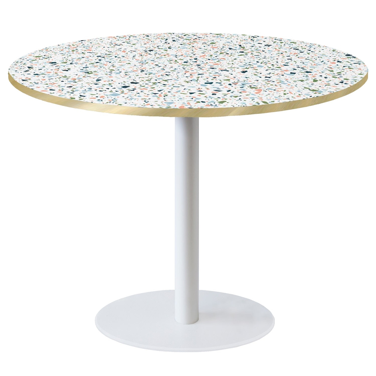 RestooTab - Tisch Rome XL weiß Ø120 Dekor Terrazzo spectra chip Kanten messingfarben