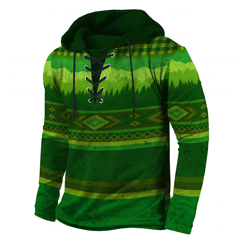 Men's Geometric Cowboy Hoodie Sweatshirt Fashion Daily Ethnic Casual Long Sleeve Hooded Outdoor Streetwear Light Brown Blue Brown Green Drawstring Color Block Fall Winter Designer S M L XL XXL XXXL