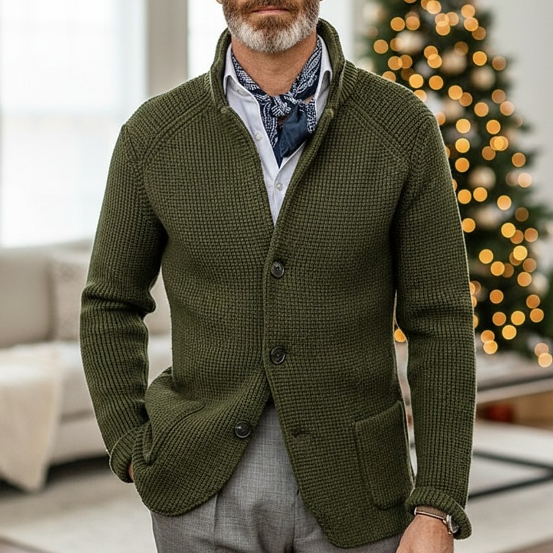 Men's Sweater Dress Sweater Cardigan Sweater Waffle Knit Regular Tops Knitted Button-Down Stand Collar Classic Casual Clothing Apparel Raglan Sleeves Spring Fall Winter Blue Army Green XS S M