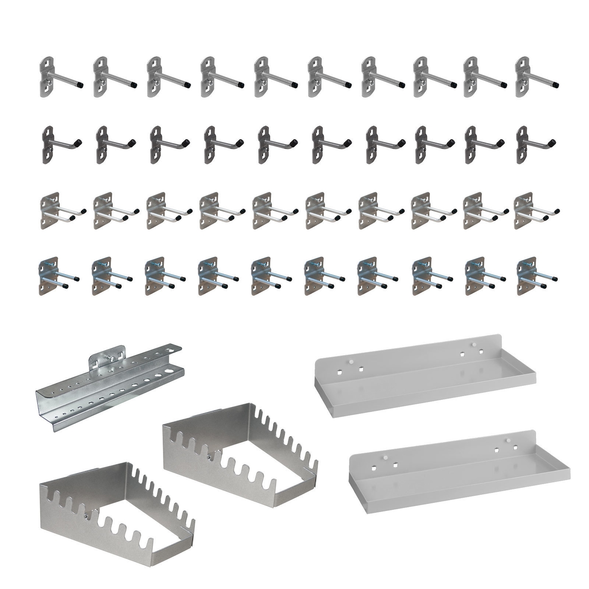 PROREGAL Hakensatz Werkzeughalter für Lochplatte 45 Stück | Pulverbeschichtet | Weissaluminium